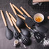 12pcs Wooden Handle Kitchen Utensil Set, Premium Silicone Cooking Tools with Holder - Includes Spatula, Spoon, Tongs, Whisk - Heat Resistant, Non-Scratch for Nonstick Cookware, Dishwasher Safe, Party Packs, Black